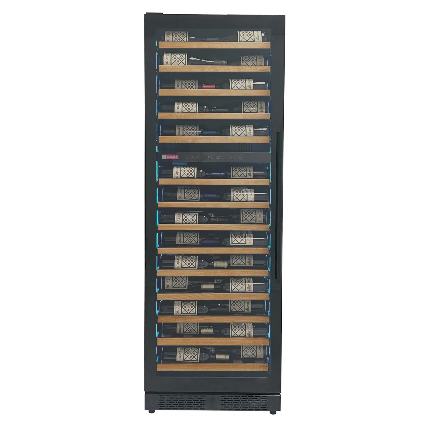 Allavino's exclusive FlexCount shelves give you ultimate flexibility and accessibility, regardless of bottle size. Spacing between each shelf gives you enough clearance to not worry about racks scraping your bottle labels. Wood slats refine each shelf to cradle your wine bottles and are designed with vibration-reduction technology to prevent harmful vibrations from excessive movement and damage.